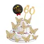 HomeBabyParty SuppliesPop The Party 60th Birthday Cake Decorations Gold Supplies Big Set with Black Happy Birthday Cake Topper, 12 Butterfly Cake Topper and 60 Digit Cake Topper