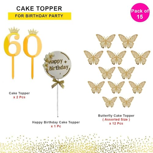 HomeBabyParty SuppliesPop The Party 60th Birthday Cake Decorations Rose Gold Supplies Big Set With Black Happy Birthday Cake Topper,12 Butterfly Cake Topper And Cake Topper (60 NUMBER)
