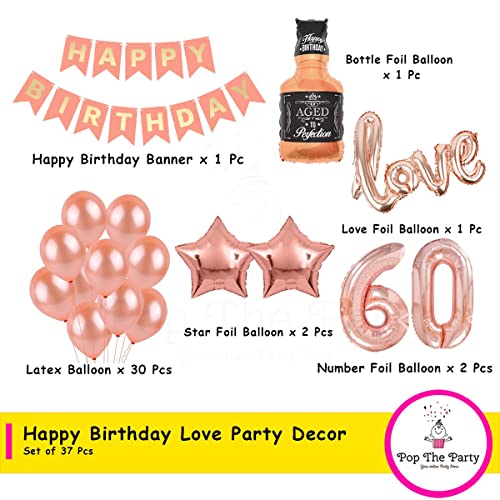 Pop the Party 60th Birthday Decoration Set with Banner, Love, Star, Latex,60 Digit and Aged to Perfection Balloon
