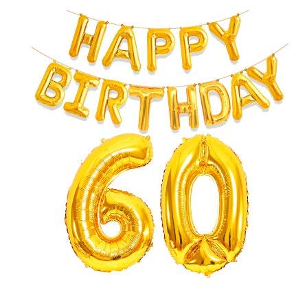 Pop The Party 60th Happy Birthday Aluminum Foil Letters Balloons for Party Supplies and Birthday Decorations (Gold)