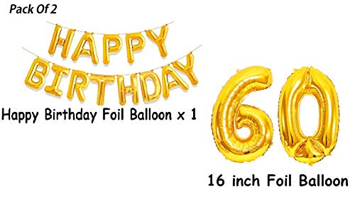 One Gold Happy Birthday Foil Balloon And 60 Digit Foil Blloon