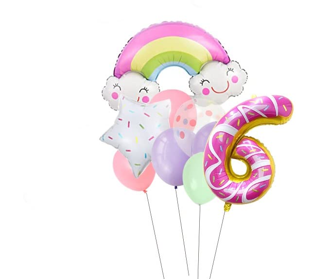 HomeBabyParty SuppliesPop The Party 6th Birthday Doughnut Theme Decoration set with Doughnut candy foil balloon , latex and Polka dot Balloon for Baby Birthday Decoration set of 10