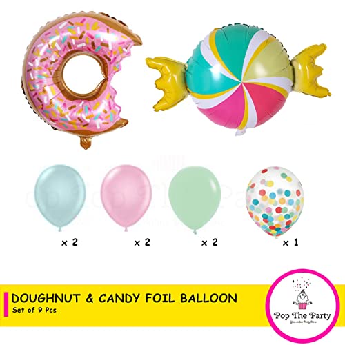HomeBabyParty SuppliesPop The Party 7th Birthday Doughnut Theme Decoration set with Doughnut candy foil balloon , latex and Polka dot Balloon for Baby Birthday Decoration set of 10