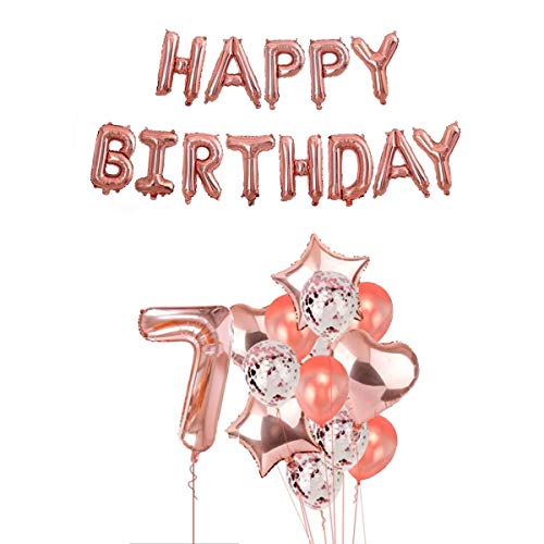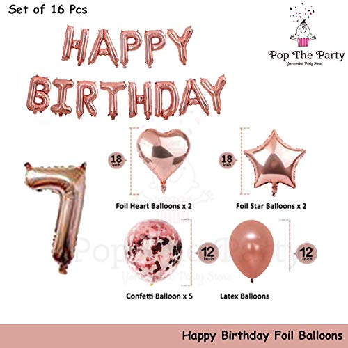 HomeBabyParty SuppliesPop The Party 7th Birthday Party Decorations Rose Gold Supplies Big Set with Happy Birthday Balloons Banner and 7 Digit Balloon for Including Latex, Star, Heart and Confetti Balloons