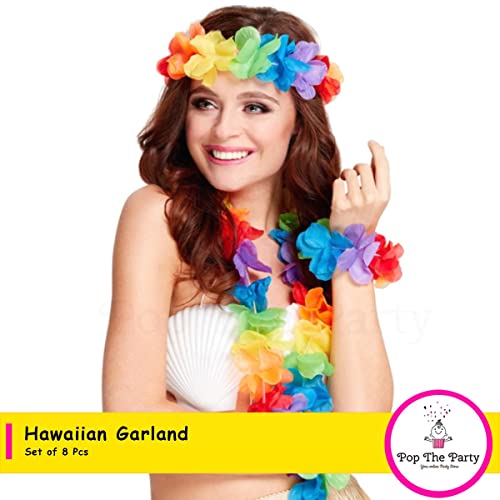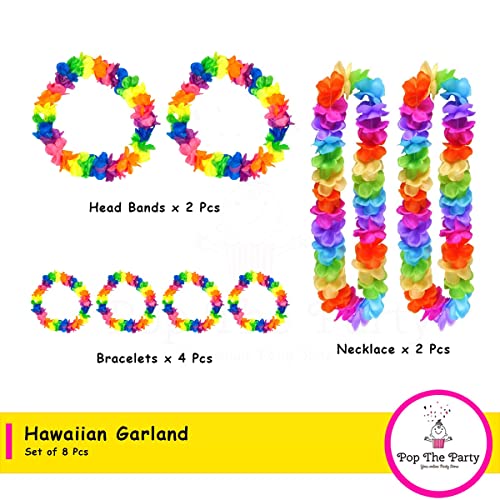HomeBabyParty Supplies8 Packs Hawaiian Flower Party Supplies of Hula Garland Necklaces Bracelets Headband Jumbo Simulated Flowers for Hawaii Decorations Birthday Party Favors Beach Theme Party Decorations