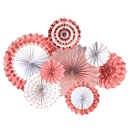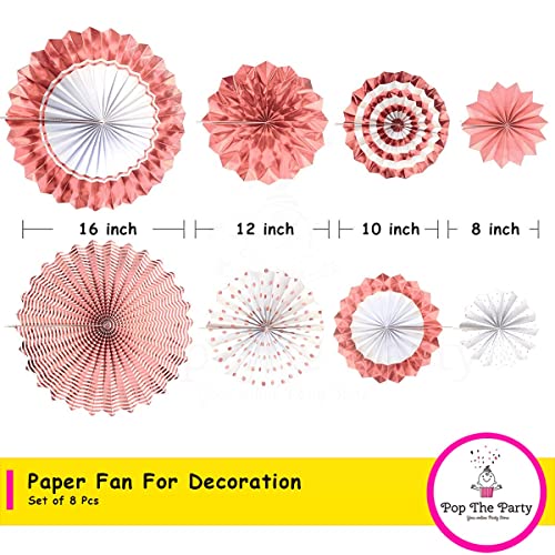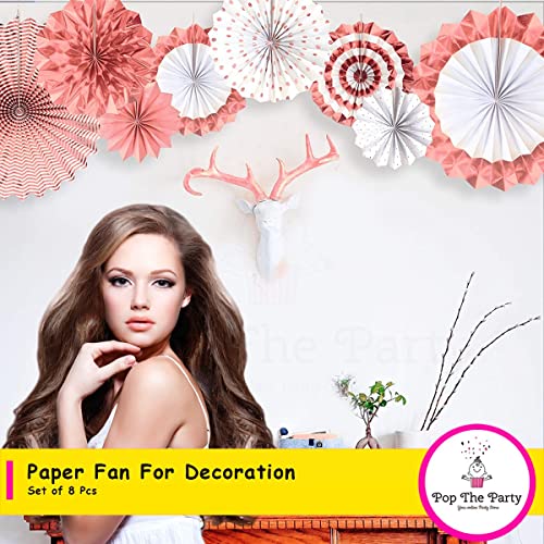 HomeBabyParty SuppliesPop The Party 8pcs Wall Decoration Set Rose Gold Colorful Round Paper Fans Party Decoration for Birthday Wedding Baby Shower Party Backdrop Decor