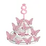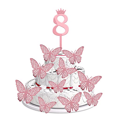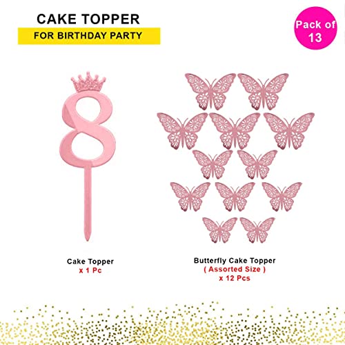 Pop The Party 8th Birthday Cake Decorations Rose Gold Supplies Big Set with 12 Butterfly Cake Topper and 8 Digit Cake Topper (8th Birthday Cake Décor)