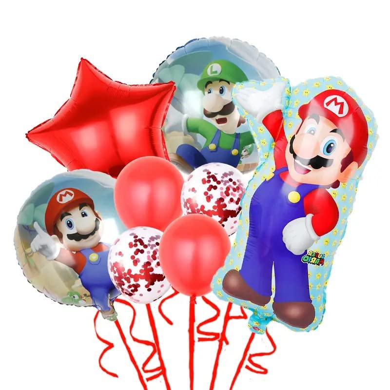 Super Mario Party SuppliesSuper Mario Balloons are very popular for kids if you are planning to hold a Bros Mario Theme birthday party for your kids the bright color balloon set will create a big hit and great fun to your party.