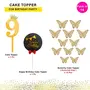 Pop The Party 9th Birthday Cake Decorations Gold Supplies Big Set with Black Happy Birthday Cake Topper, 12 Butterfly Cake Topper and 9 Digit Cake Topper