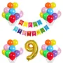 Pop the Party 9th Birthday Decoration kit with Happy Birthday Cardstock Banner , 9 Digit and Latex Balloon