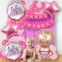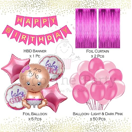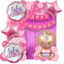 Pop The Party Baby Girl Decoration Kit of 58 Pcs, Welcome Baby Foil Banner, Baby Girl Baby Shape Foil Balloon Set.