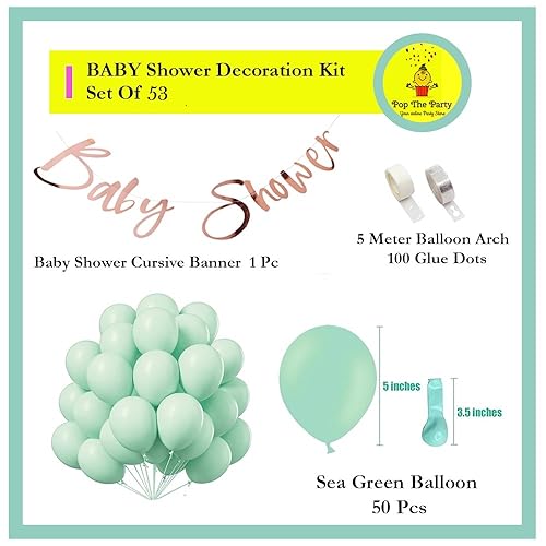 Pop The Party baby shower blue foil balloons and rose gold banner decoration kit for your baby shower set of 58