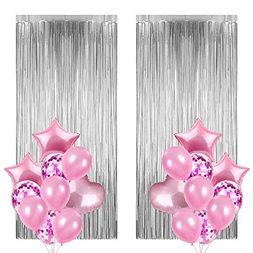 HomeBabyParty SuppliesPop the Party Balloon Curtain Party Colorful 22pcs Pink Silver Set Wedding Decoration Birthday Balloons Confetti Air Balls and Curtain Birthday Party Decorations Kids Adults Balloons