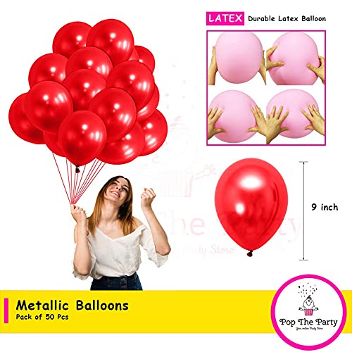 Pop The Party Balloons 50 Pcs Red Metallic Helium Latex Thicken Balloon Perfect Decoration for Wedding Birthday Baby Shower Graduation Anniversary Christmas