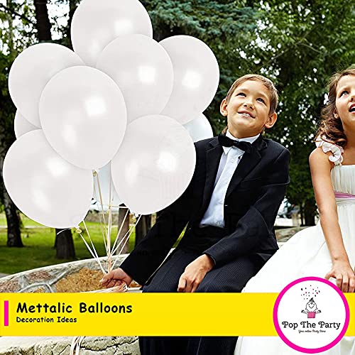 Pop The Party Balloons 50 Pcs White Metallic Helium Latex Thicken Balloon Perfect Decoration for Wedding Birthday Baby Shower Graduation Anniversary Christmas