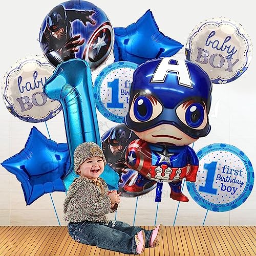 Pack Includes: 1 X Caption America Foil Balloon 2 X 3D Star Foil Balloon 2 X Round Shape Foil Balloon. 1X 1Number Balloon 4X Round Boy Balloon