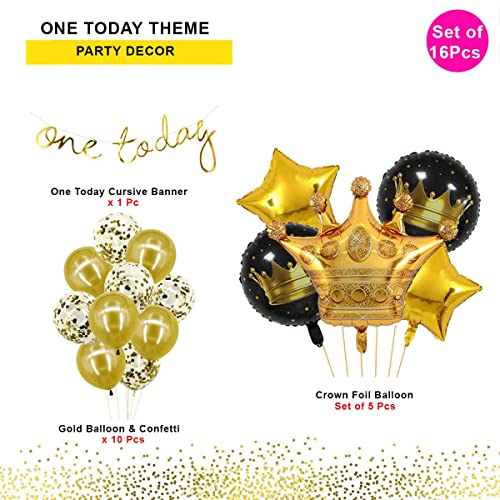 HomeBabyParty SuppliesPop The Party Birthday Party Decoration Kit with One Today Banner,Crown, Round Foil, Star Foil and Latex Confetti Balloon Pack of 16