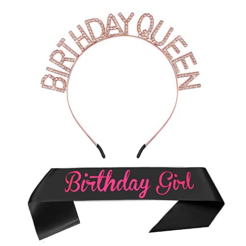 Pop The Party Birthday Girl Sash & Headband Set - Black Pink Birthday Sash Birthday Gifts for Women Birthday Party Supplies