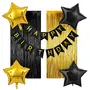 HomeBabyParty SuppliesPop The Party Black and Gold Happy Birthday Banner with Star Foil Balloon and Back Drop Curtain Foil for18th,21st, 25th,30th,40th,50th Party Decoration