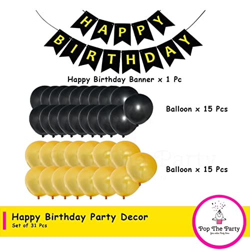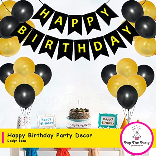 Pop The Party Black and Gold Theme Birthday Decoration with Latex Balloon for 18th,21st,30th,40th Birthday Decoration