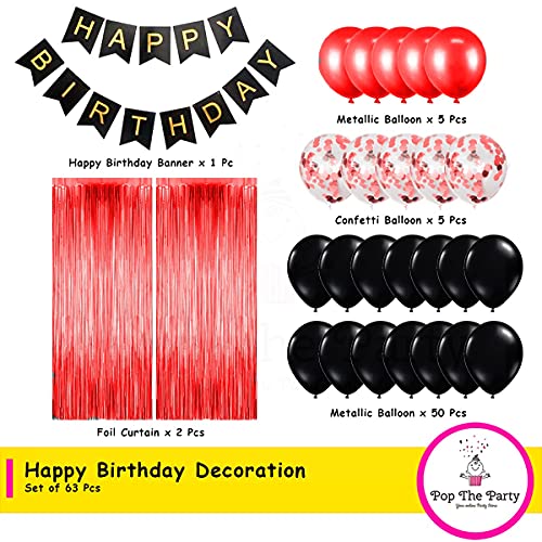 HomeBabyParty SuppliesBlack Birthday Party Decorations Set with Black Birthday Banner Red Curtains Red Confetti and Black Red Metallic Balloon Set of 63 Pack for Birthday Supplies