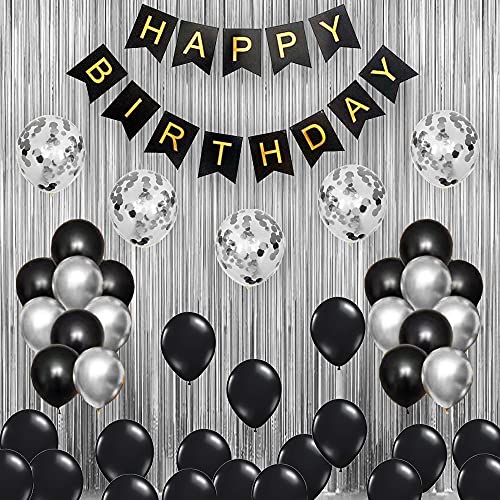 HomeBabyParty SuppliesPop The Party Black and Silver Birthday Decorations Set - Cardstock, Curtains, Confetti, Metallic Balloons - 63 Pack Party Supplies