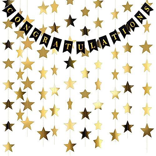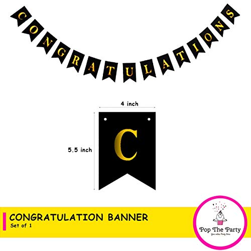Pop The Party Black Congratulation Banner with Star Garland for Use of Bachelor Birthday Anniversary Decoration