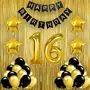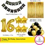 Black Gold 16th Birthday Party Decorations with Birthday Banner Star Latex Balloons Curtains and 16 Digit No. Set of 39 Supplies