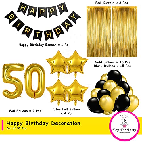 HomeBabyParty SuppliesPop The Party Black Gold 50th Birthday Party Decorations with Birthday Banner, Star, Latex Balloons, Curtains and 50 Digit No. Set of 39 Supplies