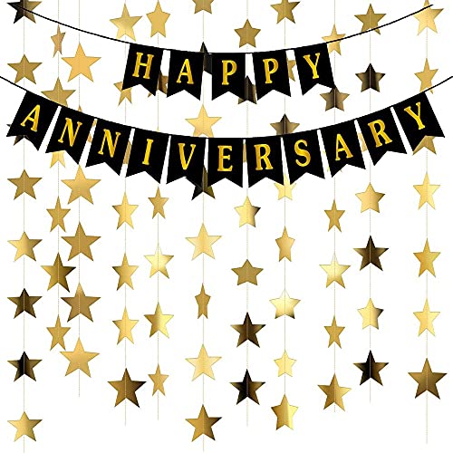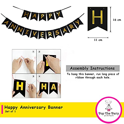 Pop The Party Black Happy Anniversary Banner for Decoration with Star Bunting Set of 3