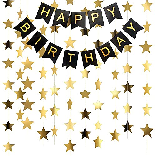 Pop The Party Black Happy Birthday Banner for Decoration With Star Bunting Set Of 3