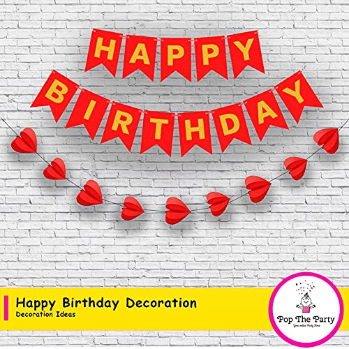 Pop The Party Black Happy Birthday Banner with Heart Bunting for Use of Birthday Party Decoration
