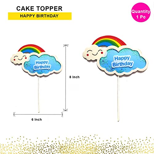 Pop The Party 2Pcs 3D Cloud Happy Birthday Cake Topper For Cake Decoration Baby Shower Birthday Party Cake Decoration.Blue Rainbow Cloud Cake Topper for Cake Decoration