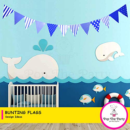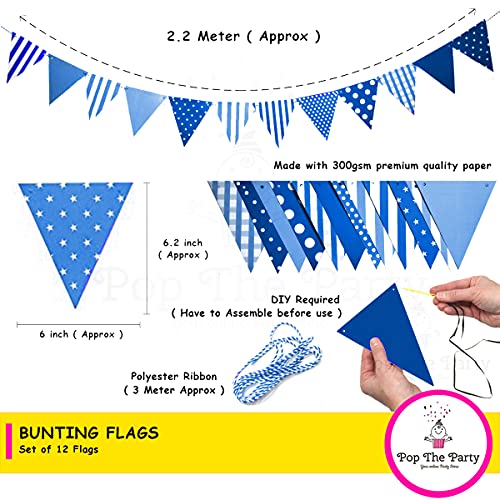 Pop the Party Bunting Flags Banner For Kids Room, Play School Decoration, Birthday Party, Baby Shower (Blue), 22.86 Cm