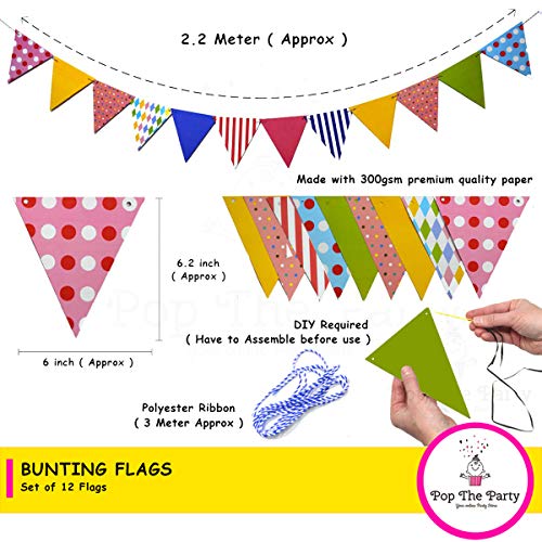 Pop the Party Bunting Flags Banner for Kids Room, Play School Decoration, Birthday Party, Baby Shower (Multi color)