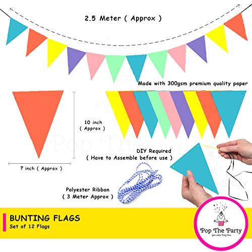 HomeBabyParty SuppliesPOP THE PARTY Rainbow triangle Felt pastel Fabric Flag Birthday Party Decoration Baby Shower Window Decorations and Children's Living Room Decorations 2 meter 12 flags (pack of 1)