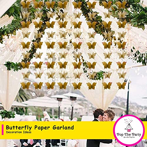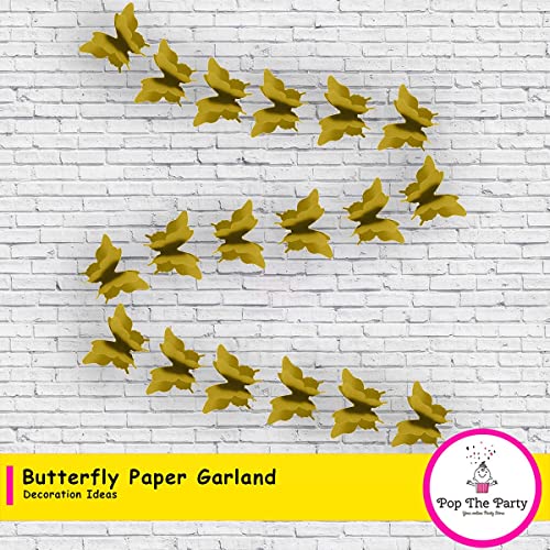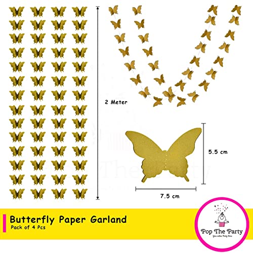 HomeBabyParty SuppliesPop the Party Butterfly Hanging Garland Party Decoration 4 Pack, 3D Paper Butterfly Hanging Banner for Wedding Baby Shower Birthday Home Decor, Blue (Red Gold)
