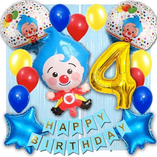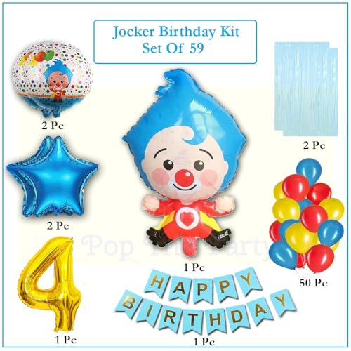 HomeBabyParty SuppliesPop The Party Cartoon Clown Balloon Birthday Party Decorations Circus Theme Balloon with 9Number Gold Foil Balloon for Circus Theme Party, Birthday Decorations Party Supplies (Pack Of 59) (Number 4)