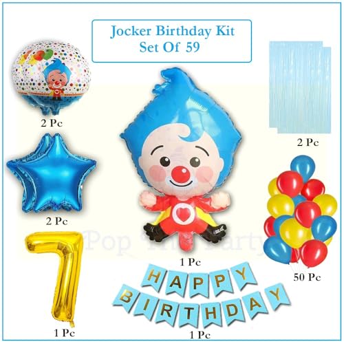 HomeBabyParty SuppliesPop The Party Cartoon Clown Balloon Birthday Party Decorations Circus Theme Balloon with 9Number Gold Foil Balloon for Circus Theme Party, Birthday Decorations Party Supplies (Pack Of 59) (Number 7)