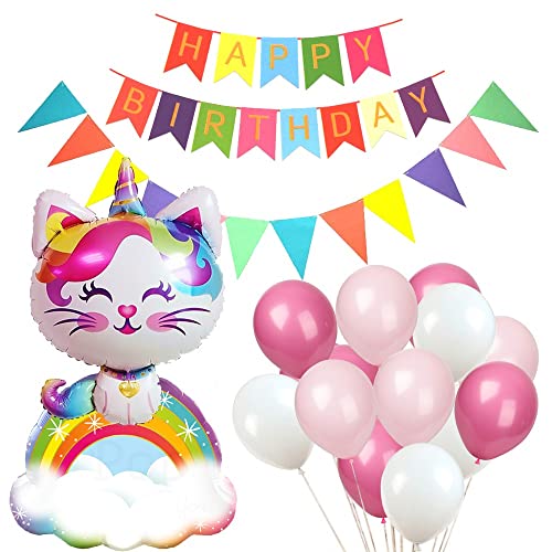 HomeBabyParty SuppliesPop The Party 58Pcs Rainbow Unicorn cat foil balloon with Silver Alphabets (M,E,W) For Cat Theme Birthday Decoration|Birthday Decor for Girls |Fancy Rainbow Kitty Balloons for Bday or Baby Shower.