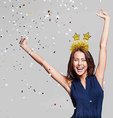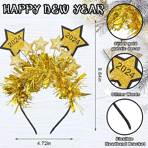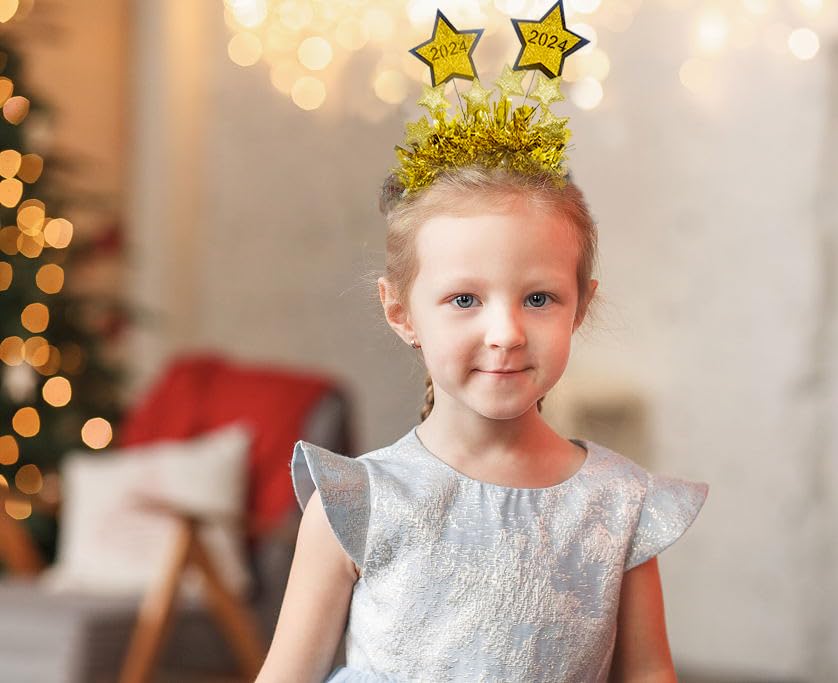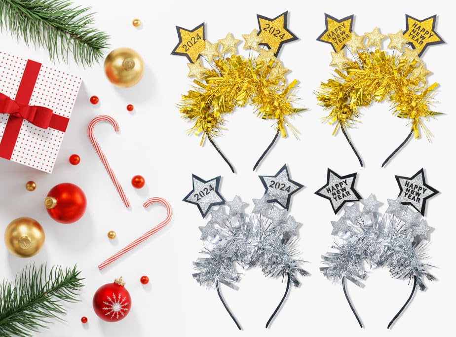 HomeBabyParty SuppliesHying 4 PCS Happy New Year Star Headbands Tiara for Women Man Kids, Golden Silver Glitter Sparkles Headwear Holiday Hair Hoops Accessories for Christmas 2024 New Year Eve Party Supplies