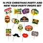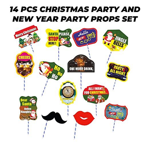 TOYXE Happy New Year and Merry Christmas Party Photo Booth Props Set of 14 Pcs