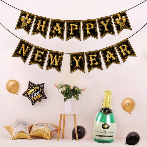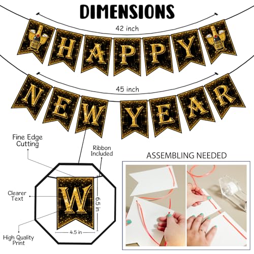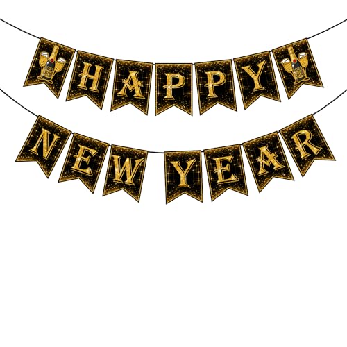 HomeBabyParty SuppliesZyozique Happy New Year Paper Banner 2025-5 Feet | Gold Happy New Year Sign for New Years Party Supplies 2025 | Happy New Year Decorations 2025