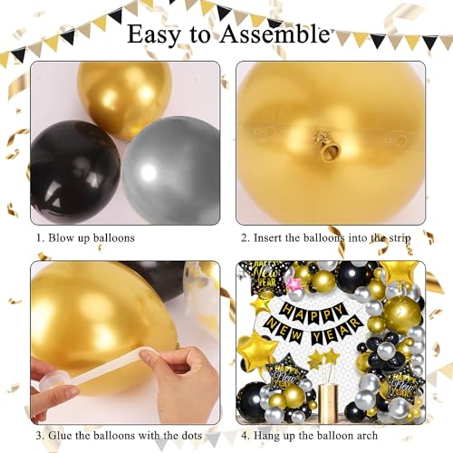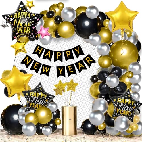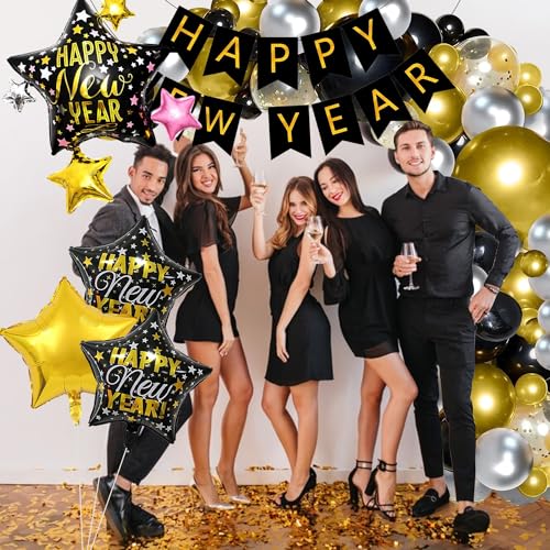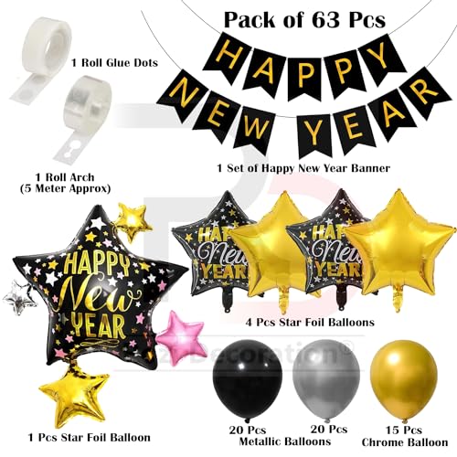 HomeBabyParty SuppliesChristmas Vibes Happy New Year Decoration 2024 Items Set of 63 Pcs Happy New Year Balloons Garland Decoration with New Year Star Foil Balloons New Year 2024 Decoration Items