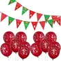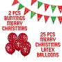 Pack Includes: 25 Pcs Merry Christmas Printed Large Red Color Latex Balloons and 2 Pcs Paper Bunting Triangular Flags Christmas Theme