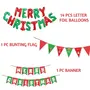 GRAND SHOP Merry Christmas Letter Foil Balloons with Matching Banner and Bunting Set of 16 Pcs Set