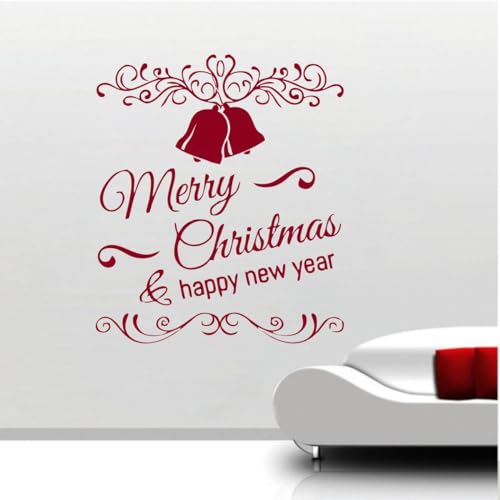 Decor Villa PVC Vinyl Merry Christmas Happy New Year Wall Sticker for Living Room Hall Room,Size: 60 CM X 50 CM,Brown