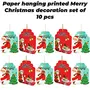 TOYXE Santa Claus Christmas Tree Printed Merry Christmas Paper Card Hanging Decoration Red Green Blue Set of 10 Pcs