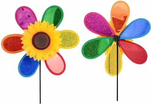 Colorful Rainbow Sunflower Pinwheels Windmill for Yard Garden Party Outdoor Decor Camping Picnic Home Garden Decoration