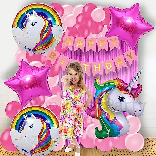 HomeBabyParty SuppliesPop The Party Cute Cartoon Unicorn Birthday Party Supplies with Banner, Children Party Decoration, Children Unicorn Themed Birthday Party Decoration Full Birthday(unicornnew2)